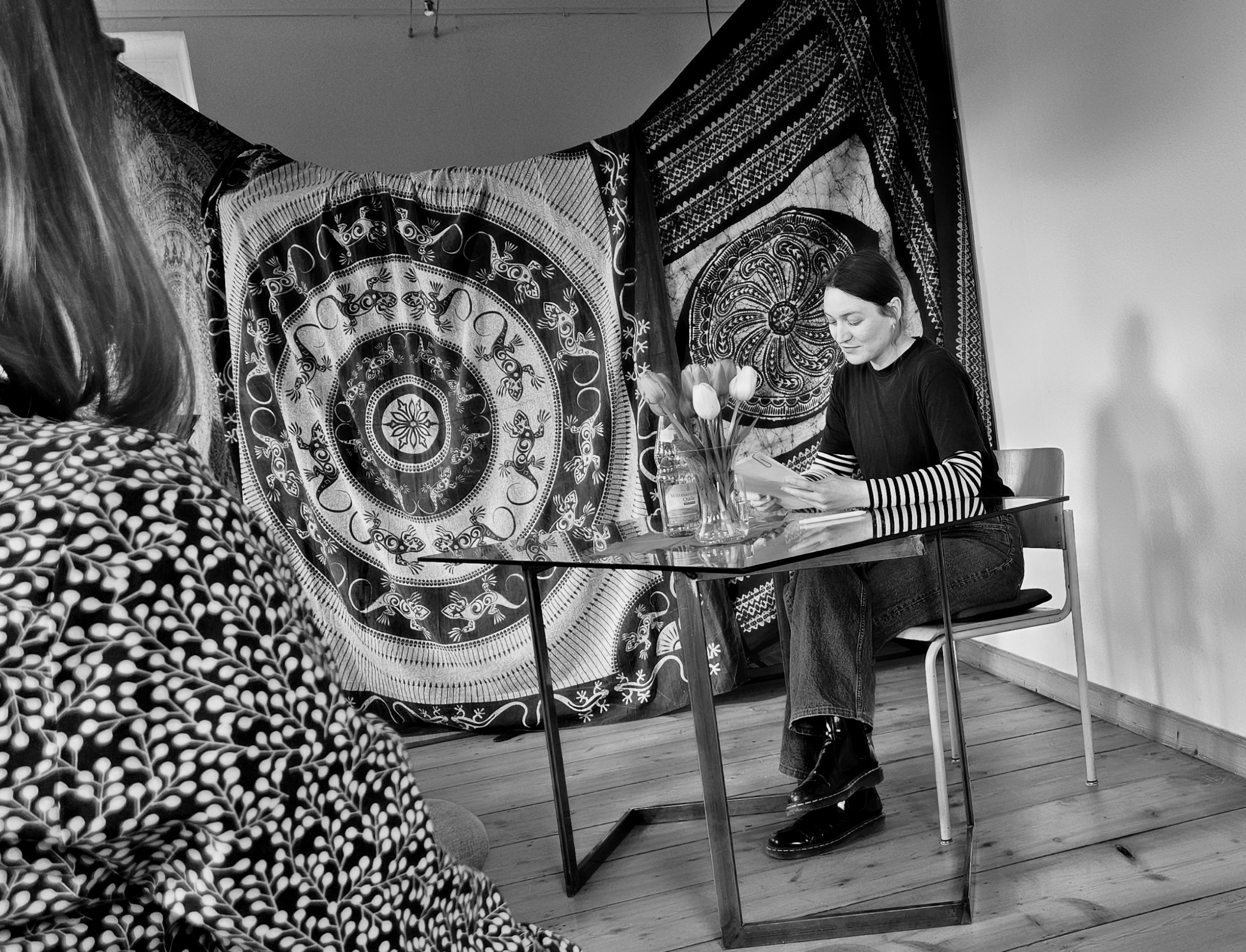 Zum Ende ihres Stipendiums las und präsentierte Julia die Graphic Novel „Simone de Beauvoir : Ich möchte vom Leben alles“ – eine Gemeinschaftsarbeit mit Co-Autorin Julia Korbik. Anschließend stellte sie erste Auszüge aus dem aktuellen Projekt vor, welches sie in der Zeit im Hochschwarzwald maßgeblich voranbringen konnte. Der Arbeitstitel lautet „Besser als nichts“. Das Publikum konnte sich davon überzeugen, dass dieses zweifellos viel besser ist als nichts. Bis zur Veröffentlichung wird es noch ein bis zwei Jahre dauern. Die Eisenbacher und Julia Bernhard sind sich nach den gemeinsamen drei Monaten einig, dass Julia unbedingt wiederkommen muss. Musikalisch begleitet wurde der Abend von